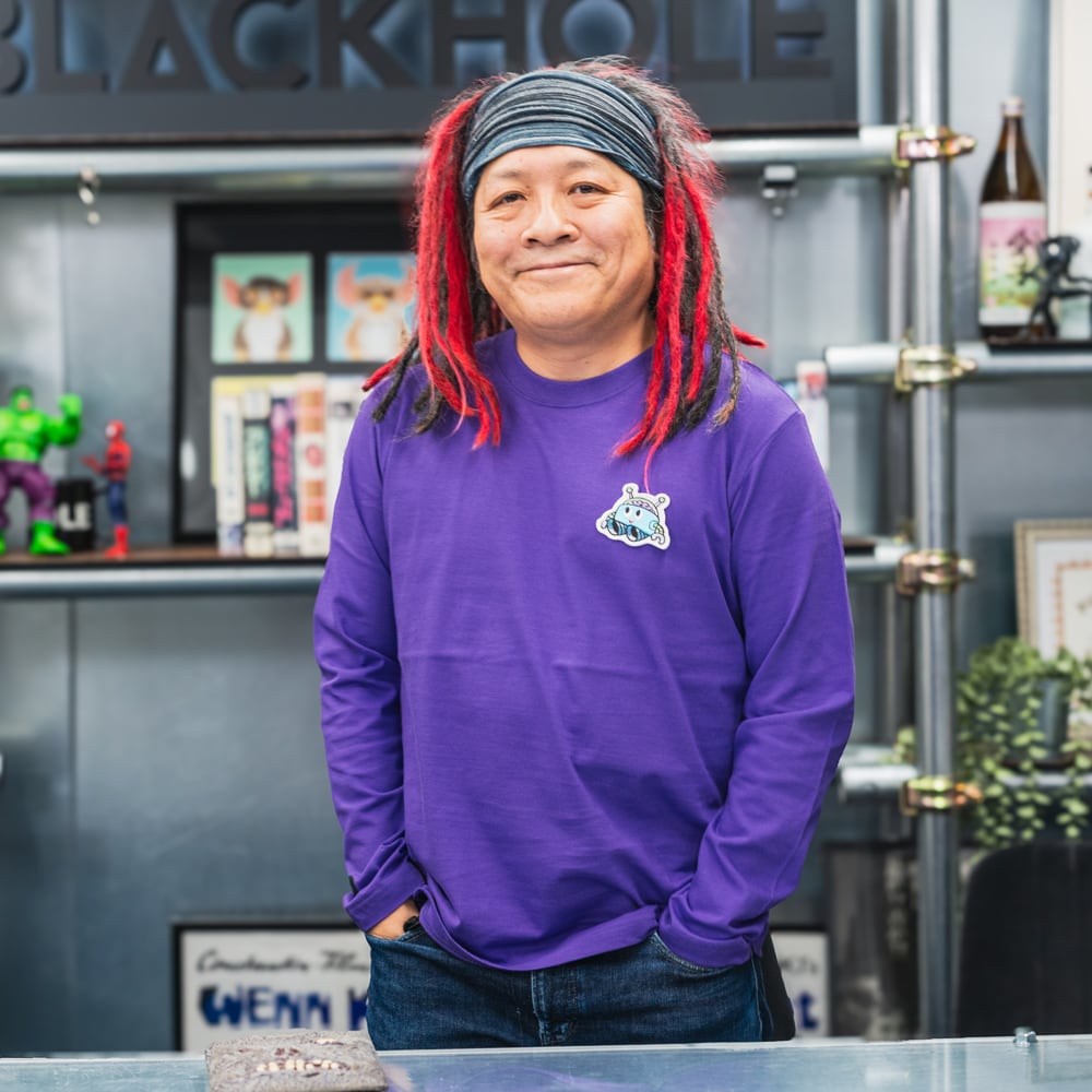 『ブラックホールくん』ワッペンロンT・パープル+ステッカー お得セット(販売期間限定)